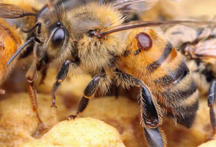 - появление на тельце пчёл коричневых бляшек, чаще всего в области головогруди, также клещей можно увидеть в поддоне улья и прилётной доске;