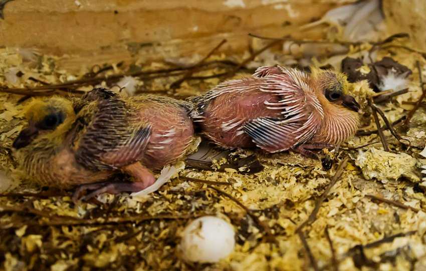 Неокрепший птенчик Подросших птенцов отселяют от родителей в возрасте двадцати восьми дней. До этого времени их выкармливают родители. Осуществляют они это с помощью специального биологического вещества — “зобного молочка”, и размягченного зерна. Все необходимые микроэлементы необходимые, развивающемуся птенчику извлекаются из этого корма.
