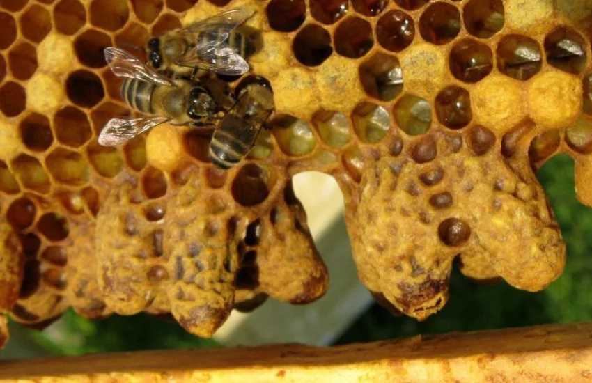 При запечатывании пчелиной ячейки с личинкой трутня пчелы делают еще более выпуклые крышечки, как бы накладывая на ячейку наперсток. Такой запечатанный в пчелиных ячейках грут-невый расплод называют горбатым.