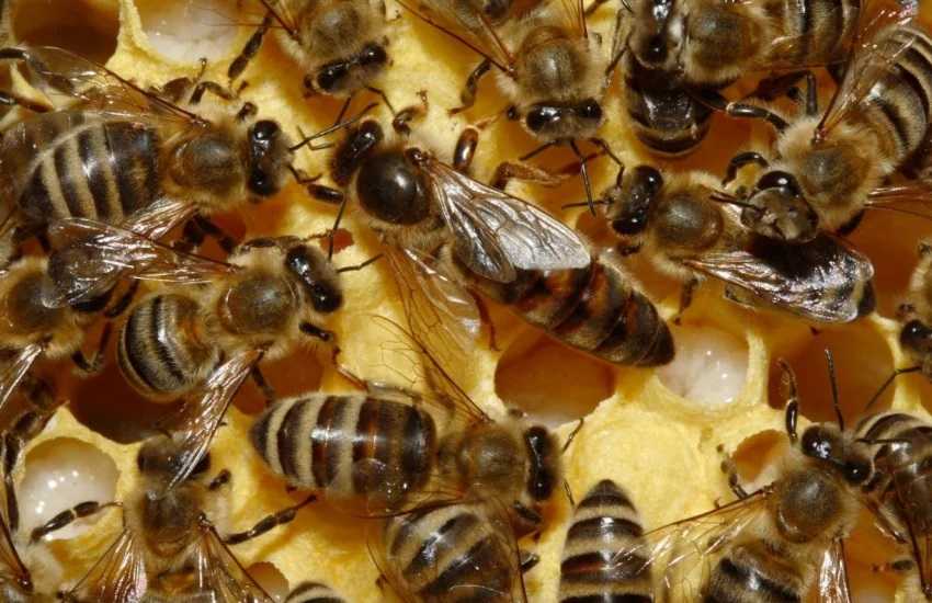 - Нужно внимательно присмотреться к концу брюшка, в области жала. У королевы эта часть имеет заостренную форму, в то время как у рабочей пчелы она слегка затупленная.