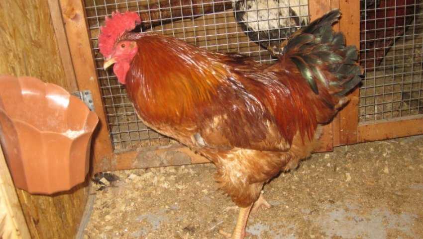 Стандартный окрас оперения – красно-коричневый с черными вставками на конце хвоста. Темно-коричневый цвет есть на крыльях и на спине. У петухов хвост обычно полностью черного цвета.