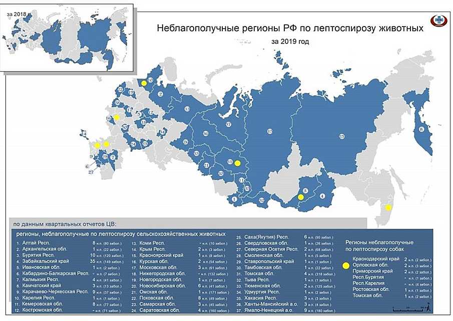 В 2019 году было выявлено 111 неблагополучных пунктов по лептоспирозу, где заболело 1950 голов. Тренд по неблагополучию — нарастающий, по заболеваемости — нисходящий.