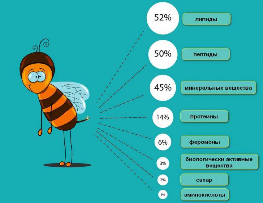 Проще говоря, яд пчелы — действительно очень сложное вещество, с наличием в составе самых разных ферментов, белковых соединений, аминов (холина и гистамина), кислот и летучих масел, испаряющихся при высыхании ядовитых веществ.