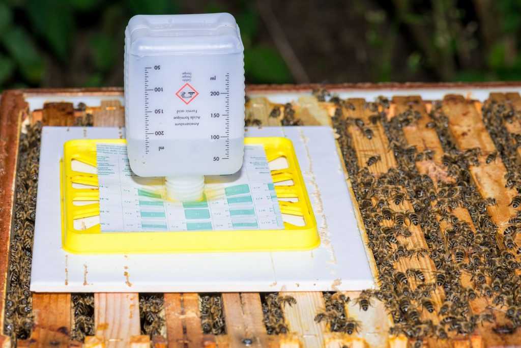 Для обработки нужно опрыснуть улей 14 мл муравьиной кислоты, затем следует укрыть на 3-5 дней сразу и по истечении еще 10 дней.