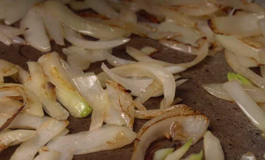 - Репчатый лук освобождаем от шелухи, промываем, нарезаем тонкими полукольцами. Пусть его количество вас не пугает. В этом рецепте чем больше лука — тем вкуснее, его вкус приобретет новые грибные нотки.