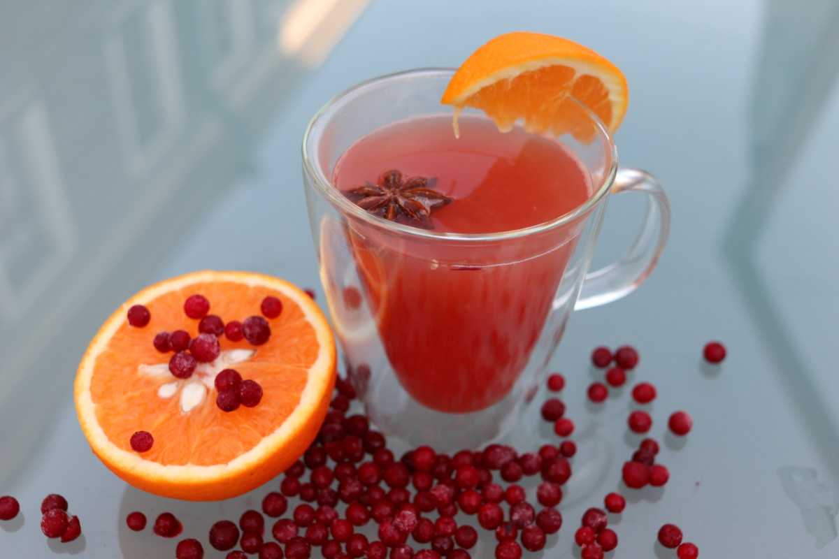 Чай с клюквой и апельсином можно пить как горячим так и холодным