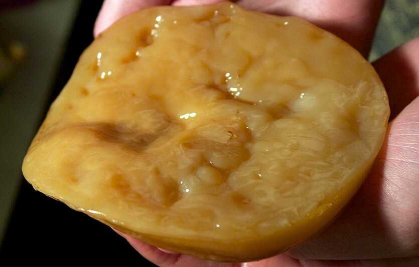 Механические повреждения видны невооруженным глазом. Места, где на «лепешку» попадают сахар, чрезмерно холодная или горячая вода, отмечаются появлением бурого налета. Тогда поделите фанго и ненадолго поместите в спродуцированный квас, чтобы восстановилась целостность, трещины и надломы заросли. Качество лечебного напитка не пострадает, поскольку патогенных реакций не происходит.
