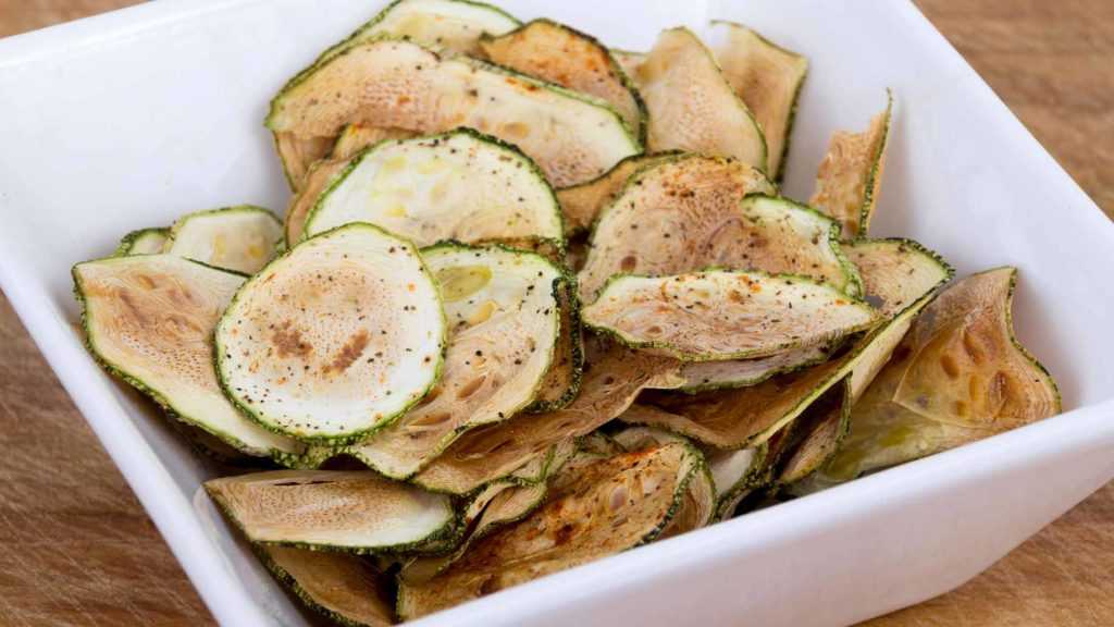 Чтобы приготовить чипсы, необходимо замочить нарезанную мякоть в медово-лимонном соке на 20 минут. Как только овощ впитает в себя маринад, его можно отправить в духовой шкаф на одни сутки до полной готовности.