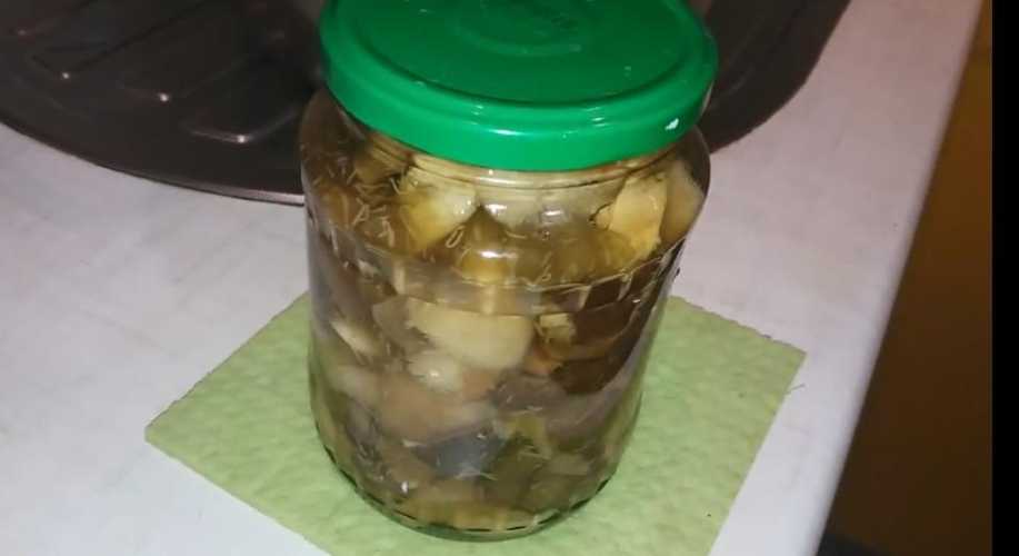 - Банки заполняют грибами, оставив небольшое количество свободного места. Затем их заливают горячим маринадом. После этого банки закрывают стерильными крышками.