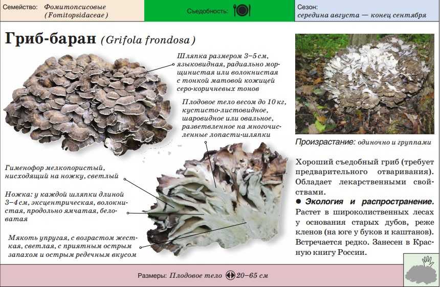 В России вы вряд ли соберёте корзину грибов-баранов, потому что даже если найдёте их, то срезать не стоит, поскольку грифола курчавая внесена в Красную книгу. Однако эта разновидность распространена в странах Азии — здесь её можно собирать без опасений. При возможности обязательно попробуйте блюдо с грибом-бараном — это и вкусно, и полезно.
