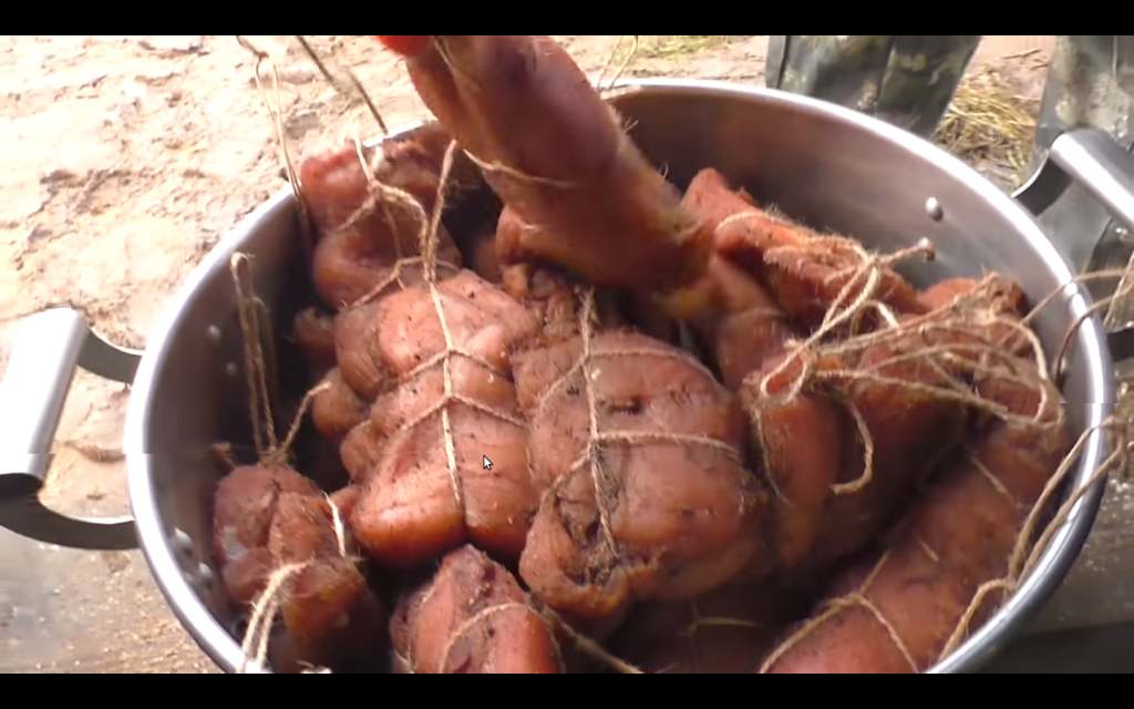 А вот еще один рецепт приготовления горячим копчением голеней индейки в цилиндрической коптильне :