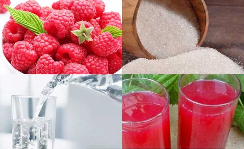 Ягоды малины тщательно размять в металлическом сите, так, чтобы отделить семечки. Полученный густой сок процедить через более мелкое сито ещё раз и отставить. Семечки и выжимки залить водой в металлической ёмкости, медленно довести до кипения и кипятить на малом огне не более 10 минут. По окончании варки добавить в отвар сахар.