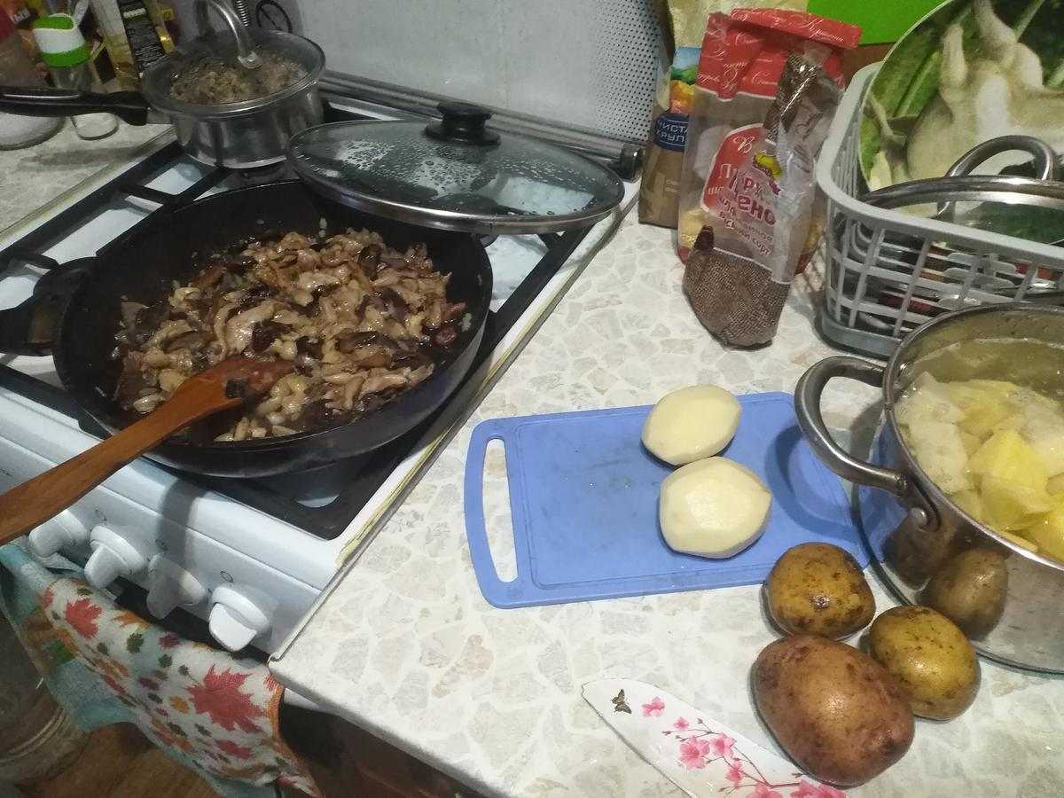 - Добавить подтопольники и готовить до полного испарения воды, изредка перемешивая.