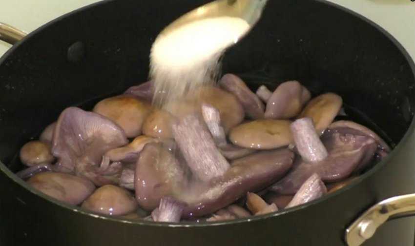 - Вскипятить большое количество воды с солью (половина чайной ложки на 1 литр воды). Опустить в кипящую воду рядовки и проварить их на протяжении 10 минут. После этого продукт нужно откинуть на дуршлаг и промыть проточной водой.