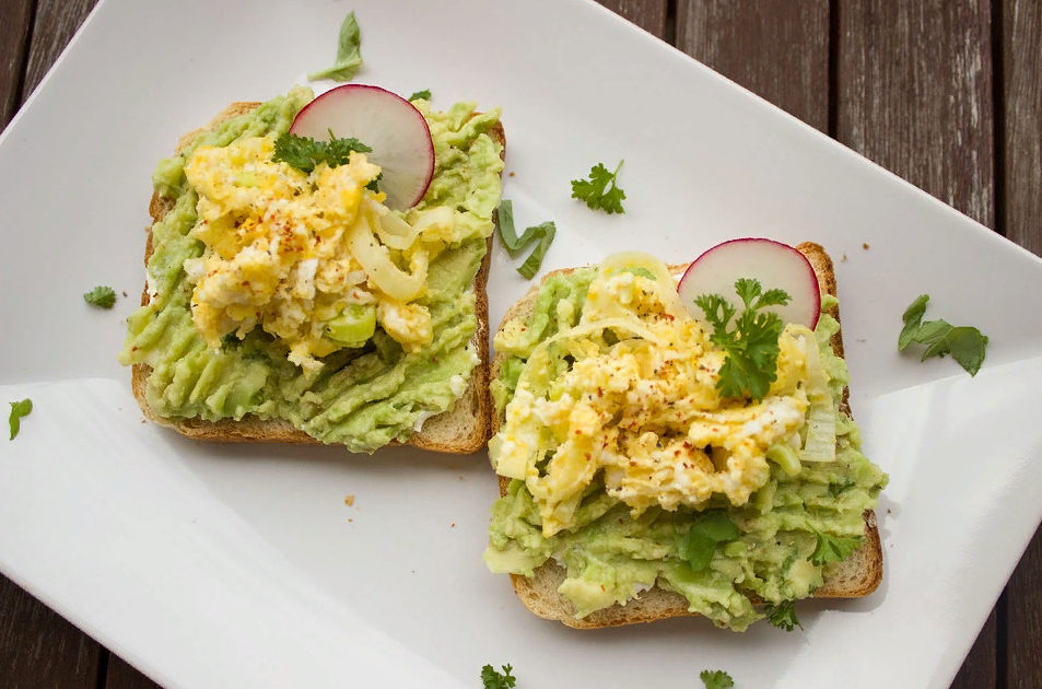 В основу паштета из авокадо с яйцом возьмите предыдущий вариант. То есть готовый паштет, который готовили без блендера. В добавок будет отварное куриное яйцо. Его очистите. Мелко нарежьте или перетрите через терку. Есть варианты использовать только желток или только белок. Либо целое куриное яйцо. Подсыпьте немного паприки. Смешайте с пастой. Намажьте массу на хлеб или тосты.