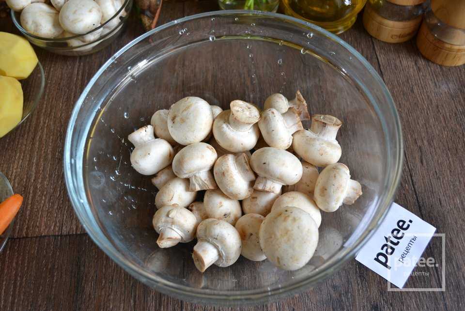 Грибы шампиньоны вымыть под проточной водой.