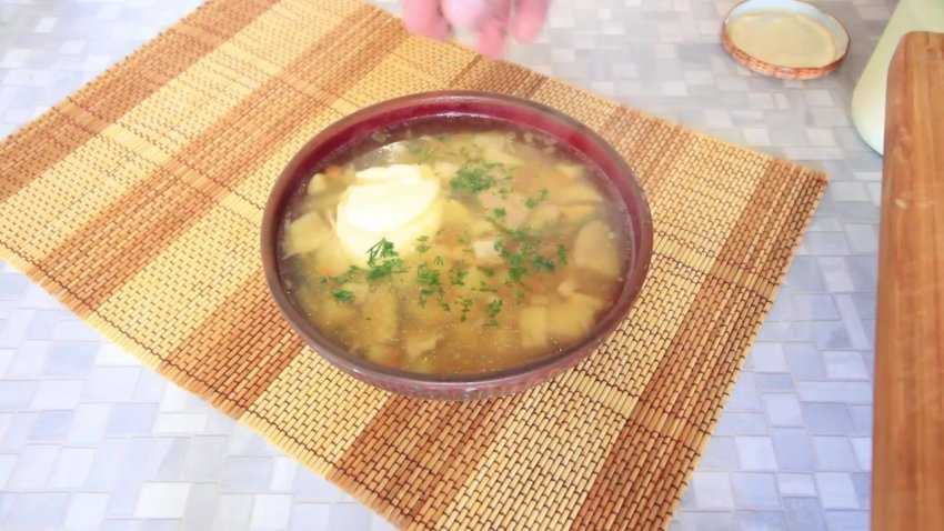 Если используются замороженные грибы, то их можно разморозить в холодильном отделении или добавлять сразу в грибовницу. Сушеные предварительно замачивают в воде минимум на 4 часа.