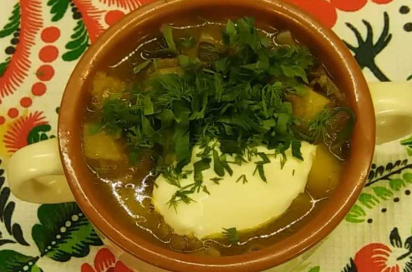 Но если вам по душе более свежий вкус, тогда зелень можно положить прямо в тарелку с дымящимся лакомством. Финальный штрих — разлейте угощение по красивым тарелкам или пиалам, положив в каждую столовую ложку сметаны.