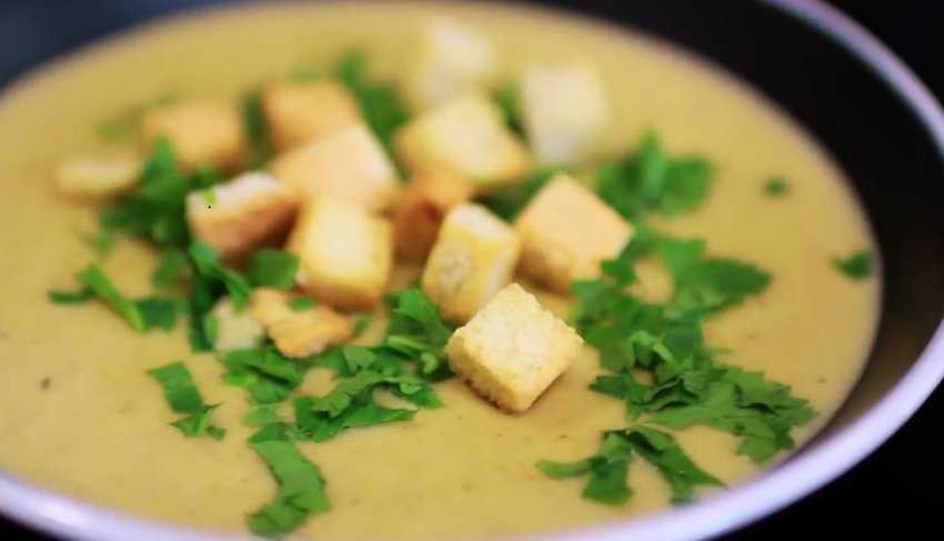 - Суп варится еще примерно пару минут, после чего настаивается некоторое время. Подавать его можно в таком виде, а можно превратить в суп-пюре. Если вы выбрали второй вариант, то нужно добавить сливки, а если первый — небольшое количество сметаны и рубленой зелени.