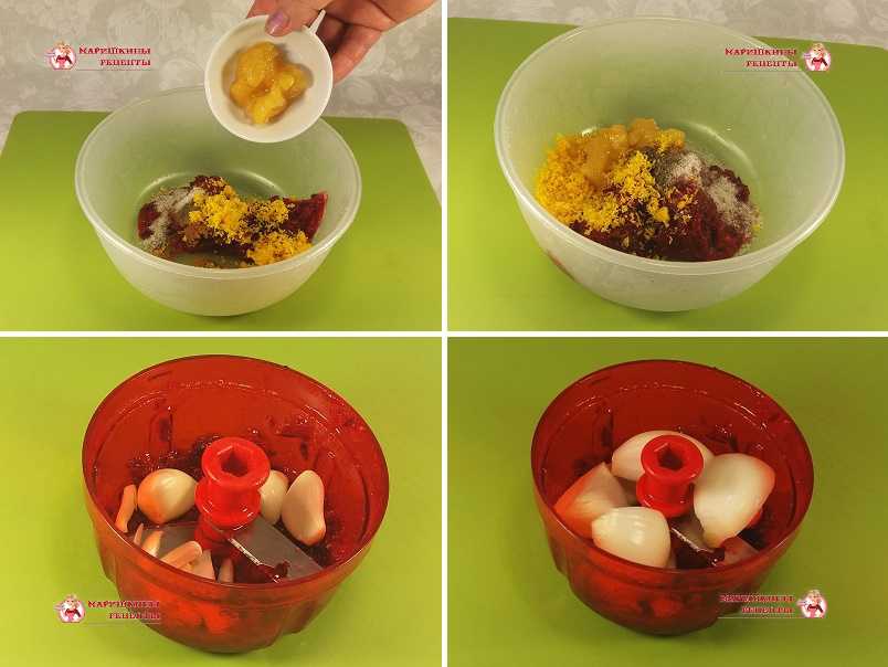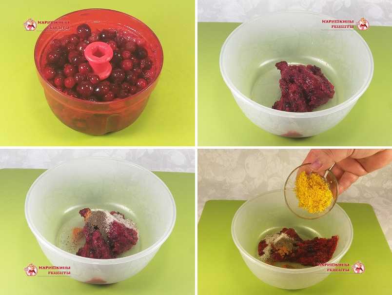 Необходимо сильно раздавить клюкву в миске так, чтобы она дала хотя-бы минимальное количество кислого сока. Это можно сделать с помощью пестика и ступки, а лучше всего просто провернуть клюкву в мясорубке. Для экономии времени, сразу же добавим к ней чеснок и лук. Как только вы справитесь с этим этапом, смешайте с клюквенно-чесночной массой соль, оба вида перца, горчицу, мед и цедру. Вот и все, предварительный этап закончен. Теперь мы имеем и подготовленный кусок свинины, и маринад для ее предварительной подготовки.