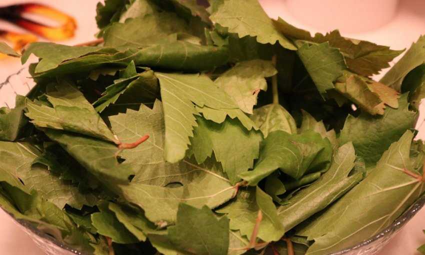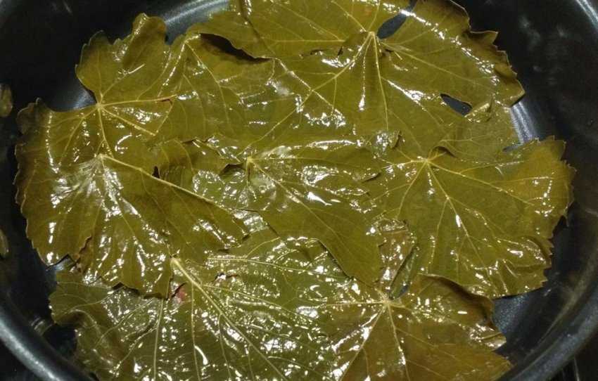 - Воду вскипятить, влить в порезанные ножом листья винограда.