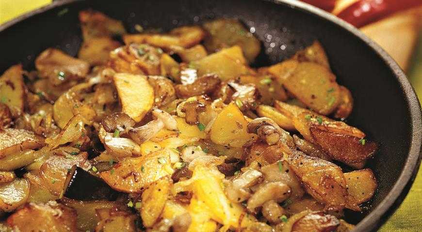 - Добавить к картошке грибы, когда лук станет прозрачным