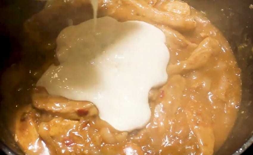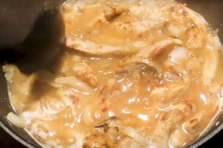 Грибной соус из грибов со сметаной и куриным мясом готовится по предлагаемому пошаговому описанию.