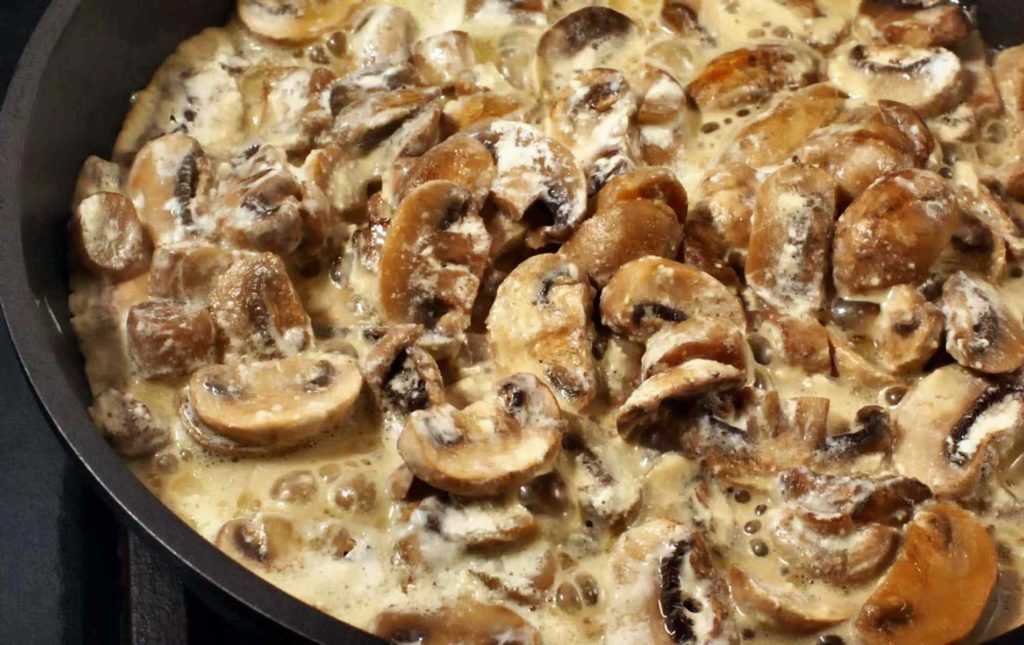 - Добавить приготовленный соус на сковороду к грибам. Теперь можно положить сметану, посолить и поперчить по вкусу, как следует перемешать. Грибы в сметанном соусе в домашних условиях можно тушить совсем чуть-чуть, или довольно сильно уварить — это зависит от ваших вкусовых пристрастий.