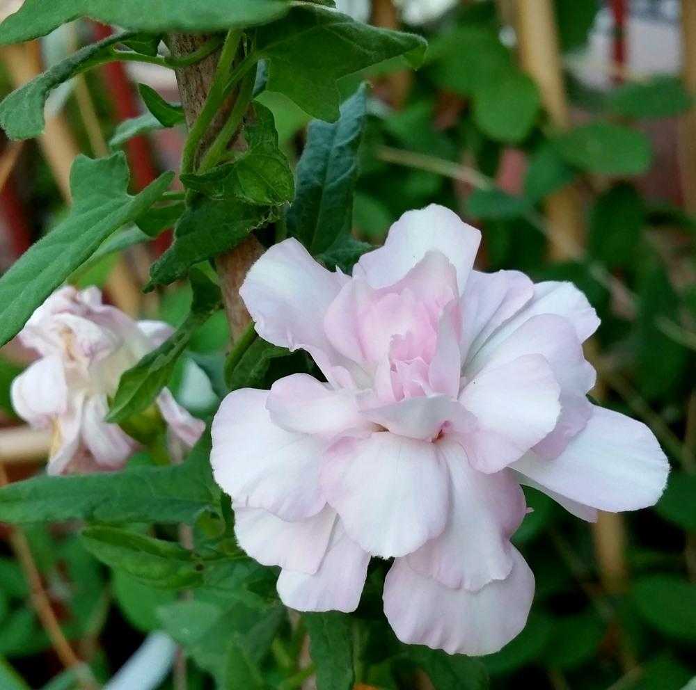 Но главная ценность лианы заключается в крупных махровых бутонах. Они густо покрывают плети растения с начала лета и до заморозков. Диаметр цветоносов достигает до 10–12 см. Тонкие нежные лепестки культуры окрашены в розовые или белые тона. После бутонов образуются коробочки с семенами. С приходом холодов все наземные части культуры отмирают, живым остается только сильное корневище, которое выпустит новые побеги следующей весной.