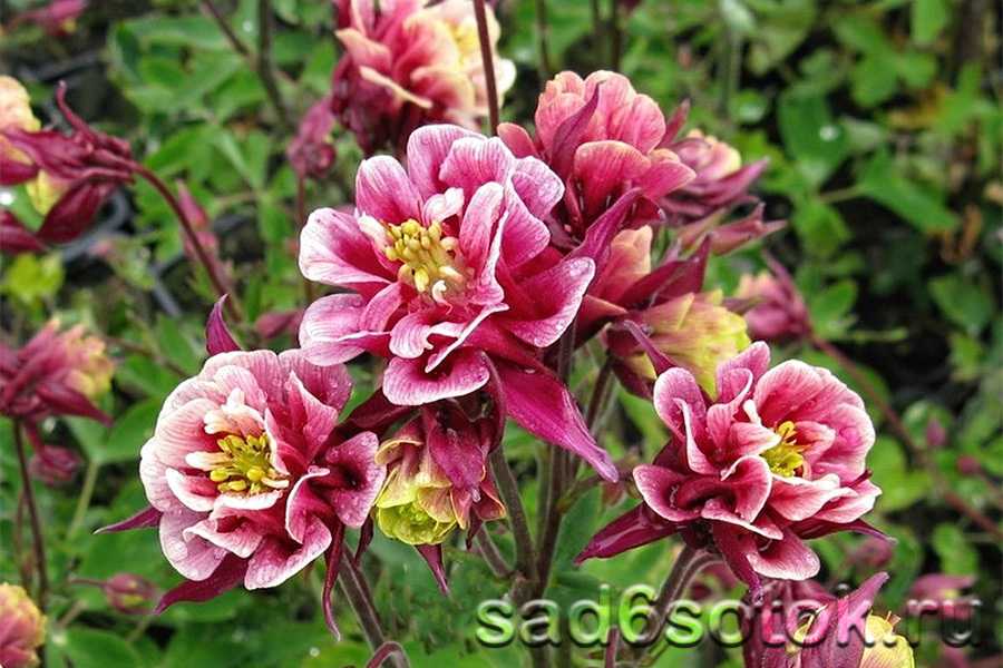 Именно этот вид наиболее часто встречается в наших цветниках. Выведен в результате гибридизации аквилегии обыкновенной с другими видами.
