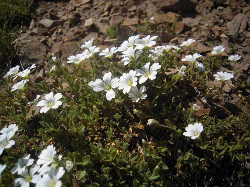 начинает цветение ранней весной. Ее отличают сильное пушение листьев, легко переносящих частые заморозки и небольшой, до 20 см, рост прямых стеблей. Ясколка биберштейна любима садоводами за устойчивость к засухе и быстрое разрастание.