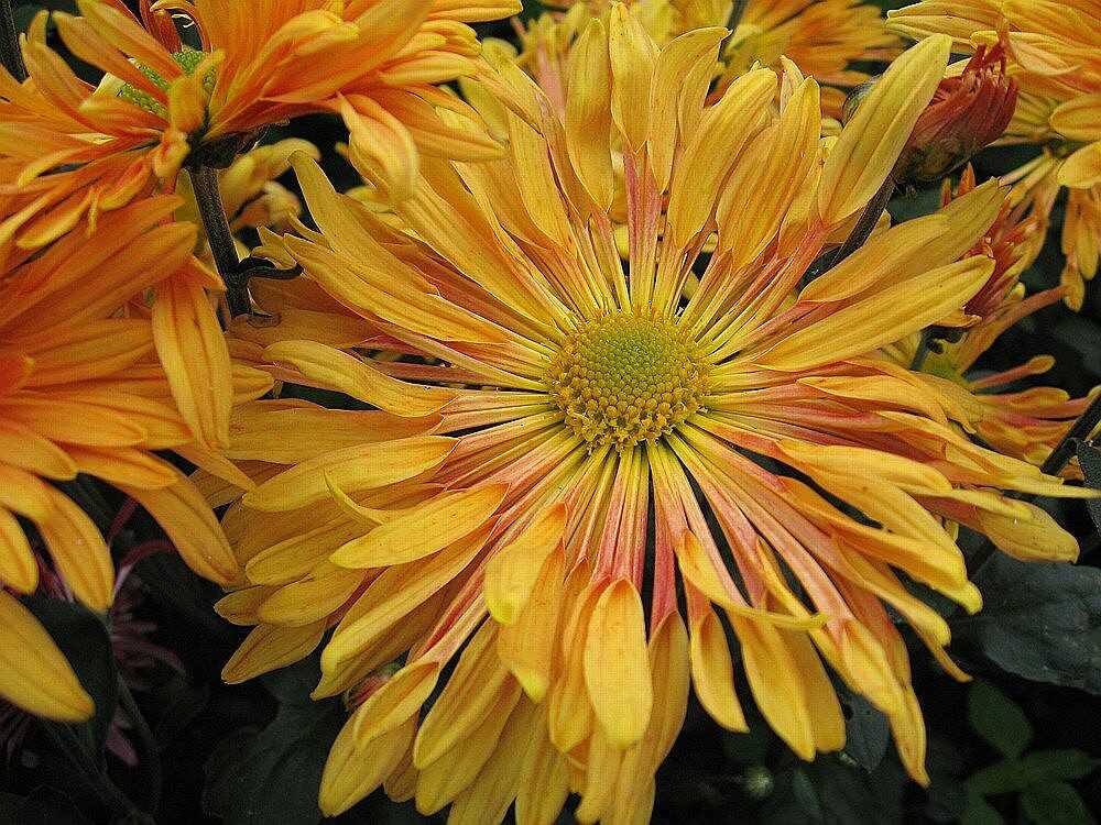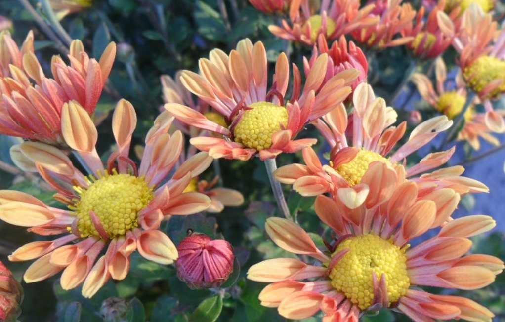 Сочетая различные виды и сорта хризантем, можно создать красивую клумбу, которая будет цвести с июля до самой поздней осени. Благодаря большому разнообразию форм и размеров кустов, хризантемы можно применять для украшения любого яруса группового цветника.