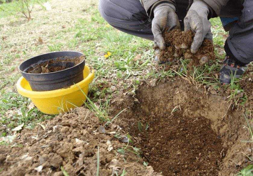 Для посадки выкапывают яму глубиной и диаметром около 30 см. На дно укладывают дренажный слой, слегка присыпают его грунтом. Затем устанавливают саженец и засыпают. Почву следует немного уплотнить и обильно полить, доставляя на одну посадку около 5–8 л воды. После этого почву рекомендуется мульчировать, чтобы лучше сохранить влагу. Если планируется групповая посадка, нужно соблюдать расстояние между ямами не менее 40 см, чтобы обеспечить достаточно места для ветвления корневищ.