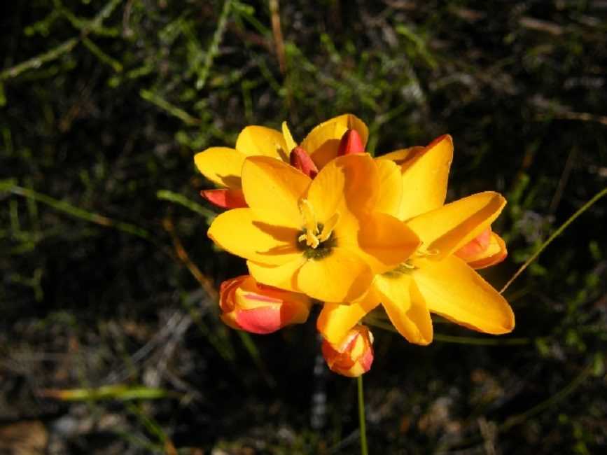 - Пятнистая (Ixia maculata) – бутоны диаметром 4 см самых разных оттенков, с лепестками ланцетной формы, серцевина темная. Макулата является самым распространенным видом многолетника