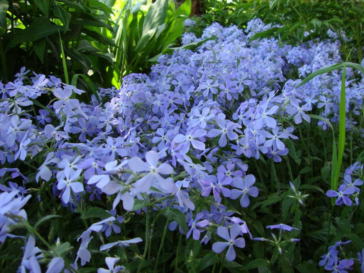 Флокс растопыренный — очень популярен среди садоводов, так как он выглядит как голубой ковер и цветет весной, когда еще мало цветущих растений.