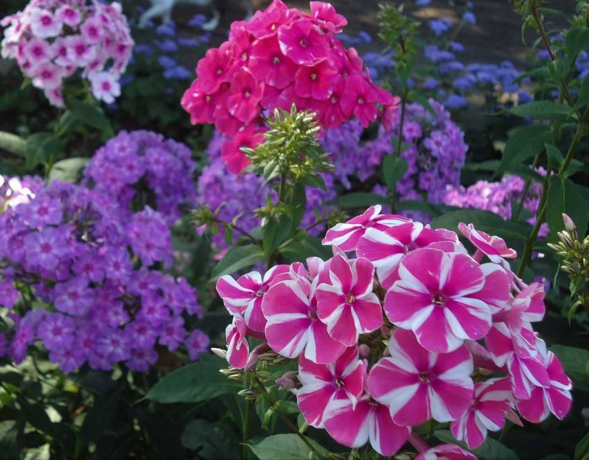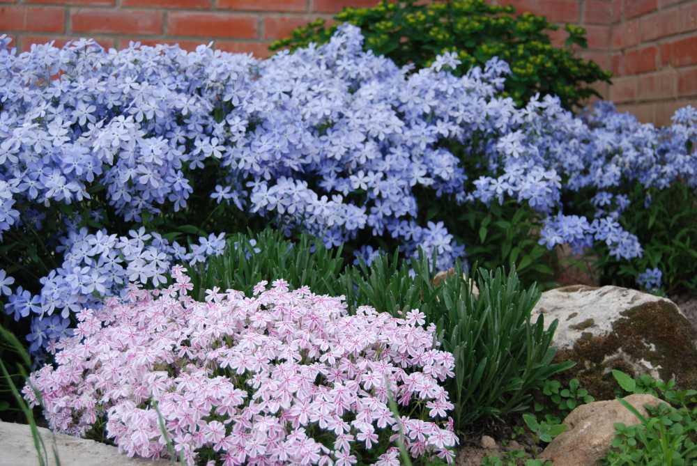 Неплохо смотрится флокс и на фоне хвойных деревьев и кустарников. Также его можно посадить рядом с почвопокровными и многолетниками. Ярко и оригинально голубые пятна цветков растопыренного флокса будут выглядеть на фоне: