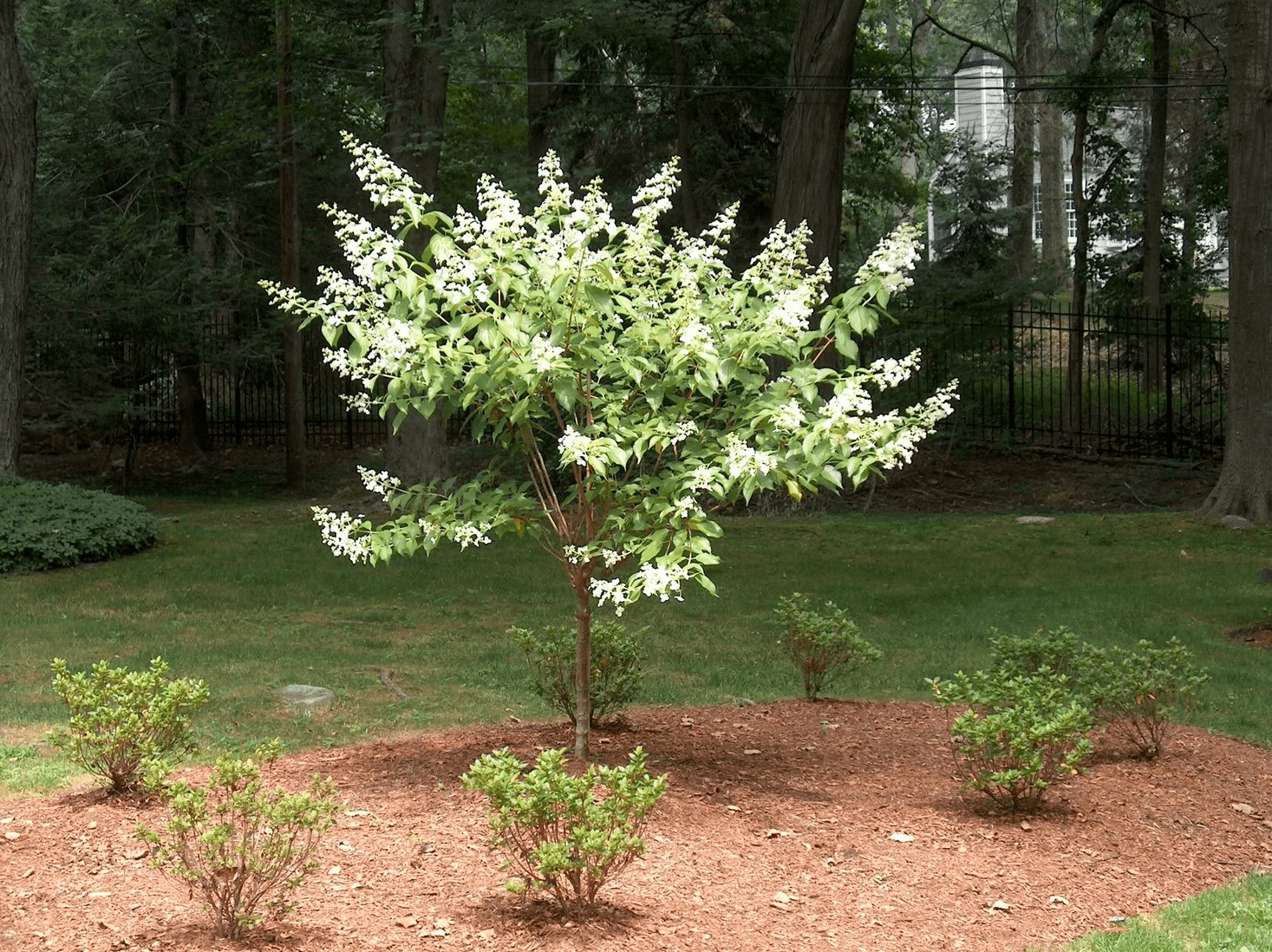 Гортензия метельчатая растет в виде дерева или кустарника. Соцветия похожи на метелку. После распускания бутонов они белой окраски, затем становятся розовыми.