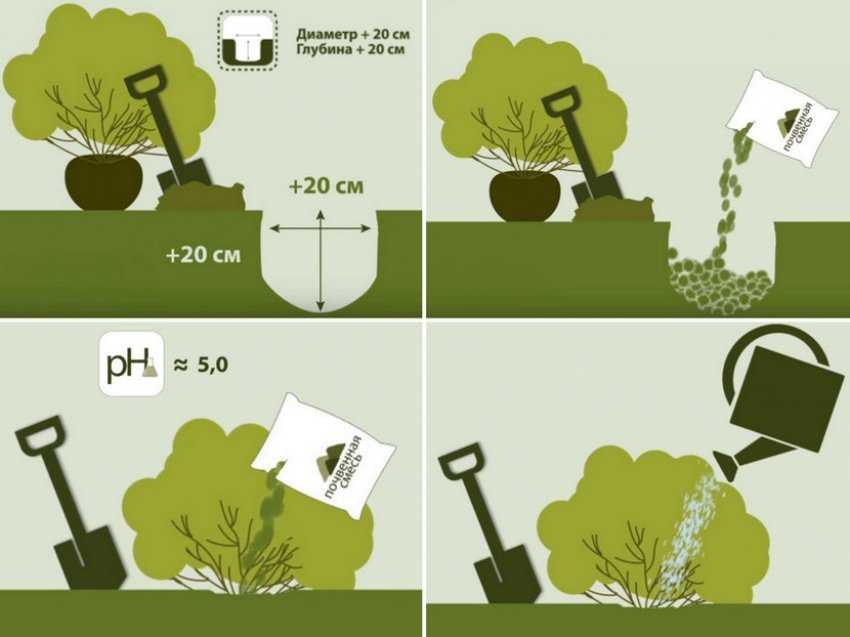 Подкислить щелочной грунт можно торфом, хвоей, опилками, другими подкислителями. Если почва плотная, яму для посадки дренируют.