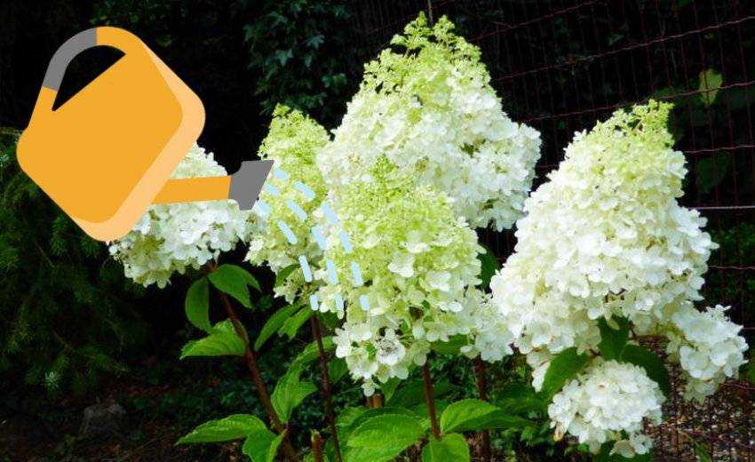 После посадки обязателен щедрый полив. В течение последующего времени, пока растение укореняется, ему необходимы регулярные поливы. Да и в дальнейшем чрезвычайно влаголюбивая гортензия метельчатая Мэджикал Мунлайт потребует от садовода внимания именно в плане увлажнения: нехватка воды немедленно скажется на декоративности.
