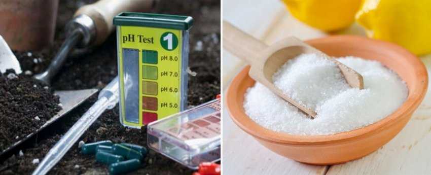 Если кислотность грунта ниже 5 pH, то его искусственно подкисляют. Для этого можно создать слой мульчи или внести пищевые кислоты или органическое удобрение. Мульчирование осуществляется посредством отходов от переработки хвойных пород деревьев и кустарников — опилки, кора или хвоя. Можно также 1 ч. л. лимонной кислоты развести в 10 л воды. Таким составом рекомендуется поливать грунт до посадки растения на протяжении 2 недель. Навоз прекрасно окисляет землю. Его следует вносить перед посадкой и на стадии ухода за кустарником.