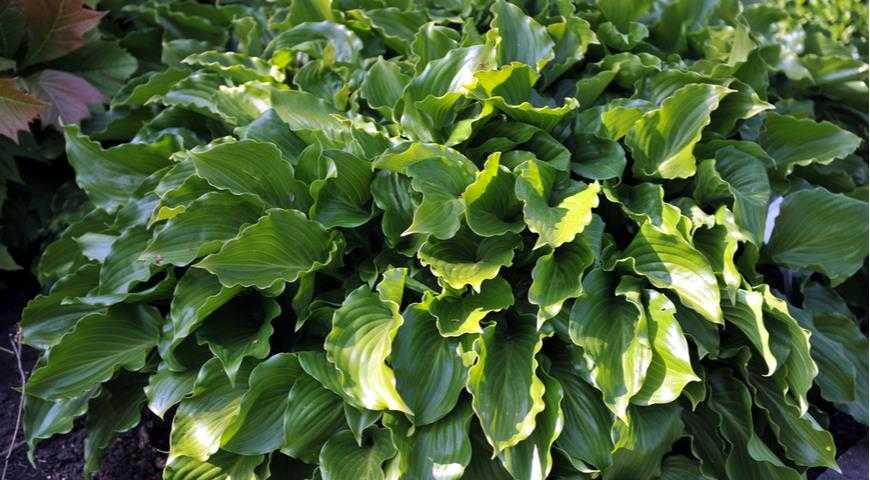 Более лояльны к солнечному свету хосты с кремовой (жёлтой) каймой или серединой листа — их выразительный рисунок в полной мере проявляется лишь при достаточном освещении