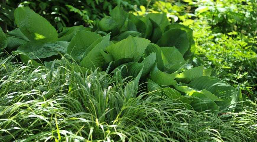 Разные виды хосты будут очень красиво и насыщенно смотреться на одном участке
