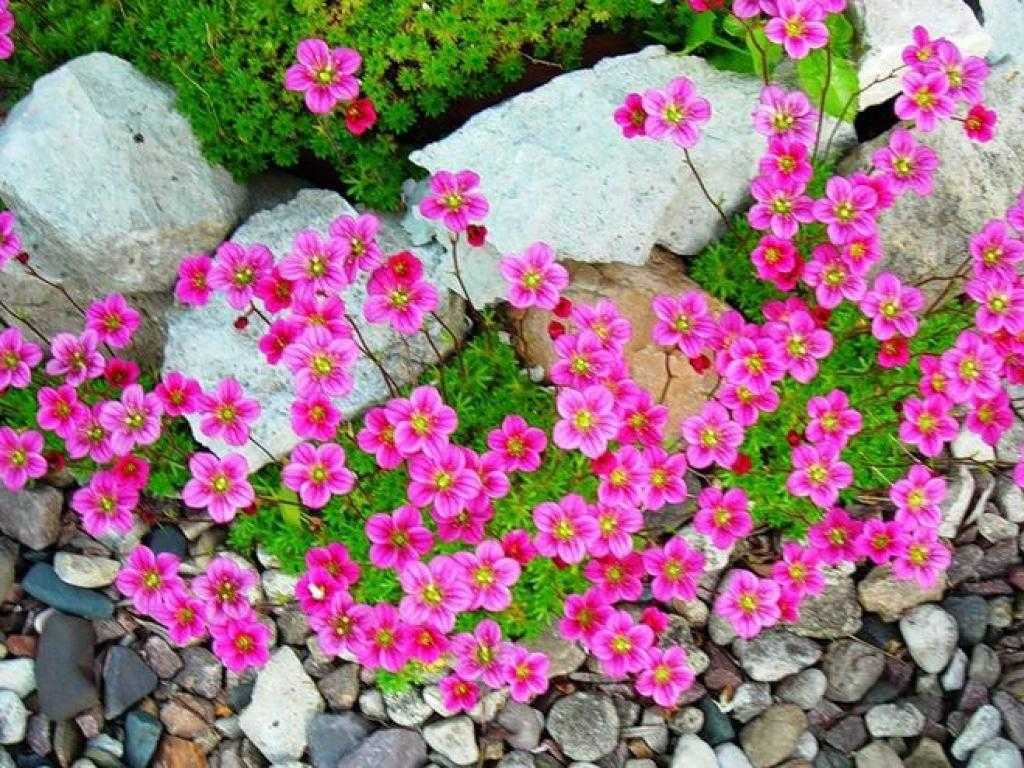Также, камнеломку можно использовать и в различных клумбах, комбинируя ее с розой, тюльпанами и всевозможными цветами такого же типа. Подойдут как розовые, так и красные вместе с белыми цветами.