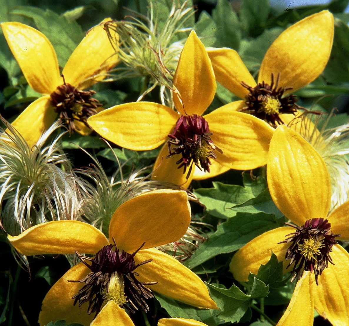 Еще один высокорослый сорт растения с длиной плетей до 6 м. Максимальный диаметр цветков около 6 см. В самом начале цветения бутоны клематиса похожи на поникающие колокольчики, но со временем они полностью раскрываются. Окрас их насыщенный желтый. Длинные плети, украшенные цветами, прекрасно смотрятся на высоких деревянных опорах. Ими украшают беседки, оформляют террасы, используют для декорирования парадных ворот и арок.