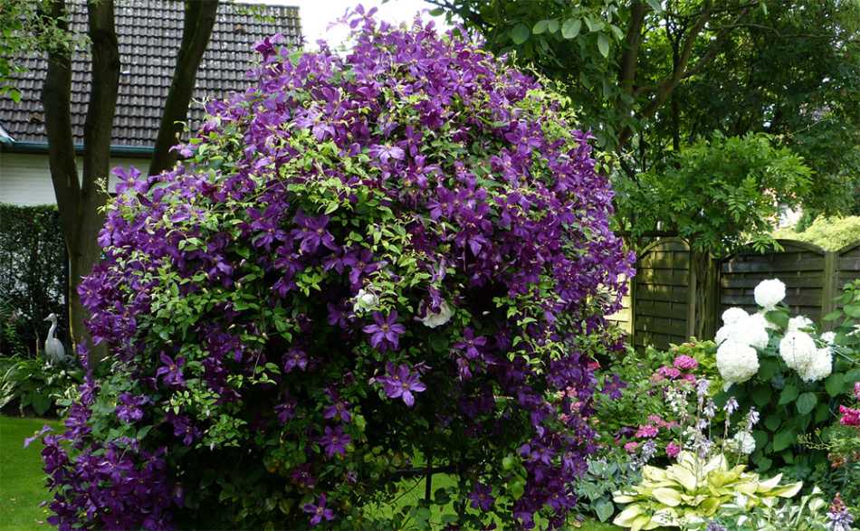 Регулярные подкормки и полив обеспечат пышное цветение клематиса Президент
