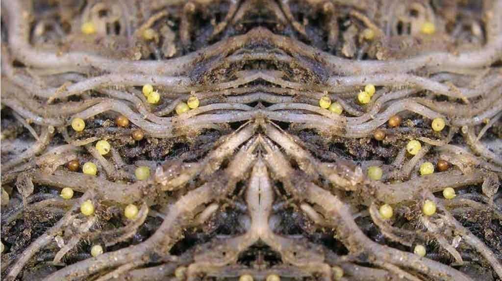 - Корни нужно распределить равномерно по холмику. Они должны лежать по кругу и не загибаться.