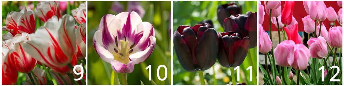 Выведенные многочисленные сорта тюльпанов, конечно же, имеют более обширную палитру цветов. Можно встретить пурпурные, фиолетовые, черные, красные, а также сорта, цветы которых включают в себя сразу несколько идеально гармонирующих между собой расцветок.