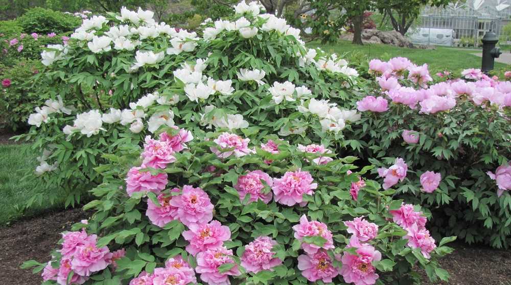 При этом древовидные пионы почти все относятся к ранним, чтобы добавить красок в середине лета, клумбу все равно придется дополнять травянистыми сортами. Пионы Ито часто бывают средними по времени цветения.