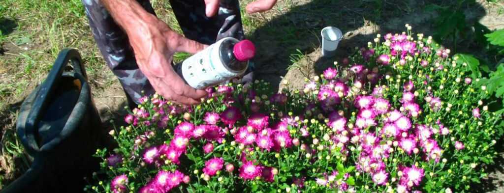 Весенний уход за хризантемами подразумевает внесение удобрений, что представляется важной процедурой. Она способствует хорошему росту побегов и обильному образованию соцветий