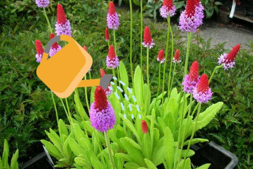 В засушливое время весной или летом следует следить, чтобы корневая система примулы не пересыхала и при надобности их поливать.